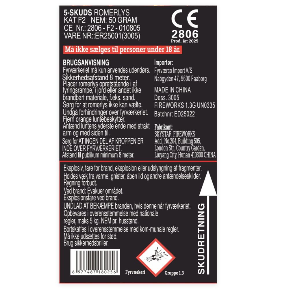 - Krudtmængde: 50 gram NEM