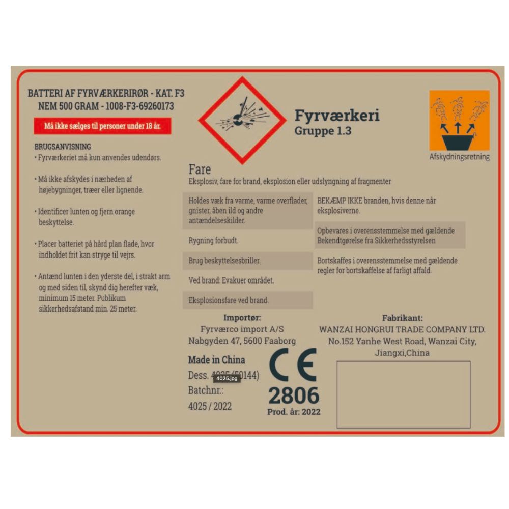 - Krudtmængde: 500 gram NEM
