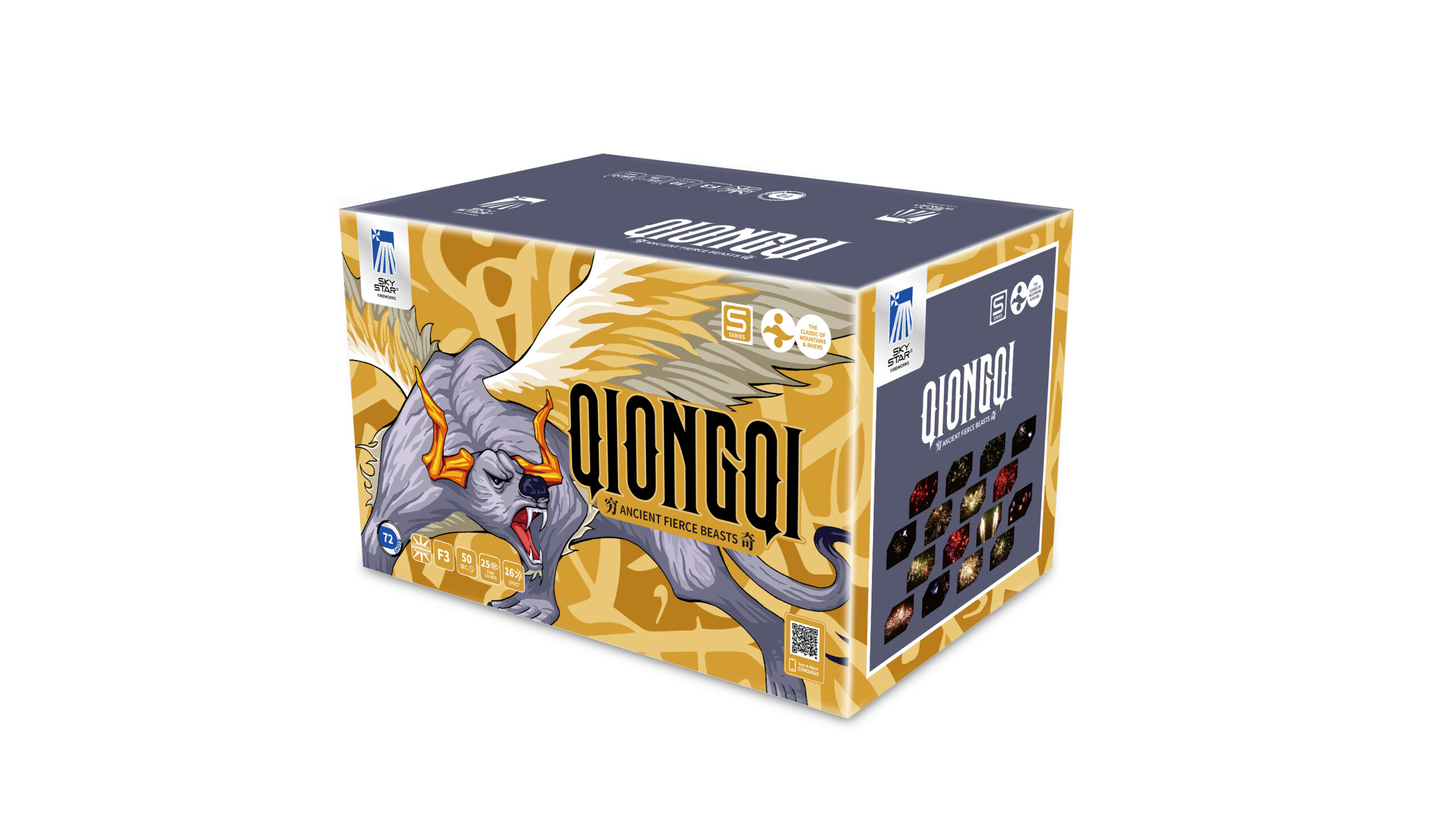 72 skuds compound batteri. 25 mm. Farverig og dynamisk fyrværkerioplevelse. Kombinere flotte neoneffekter med storslået guldfyrværkeri. Afsluttes med en energisk finale
